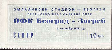 ULAZNICA OFK BEOGRAD - NK ZAGREB sezona 1976/77.