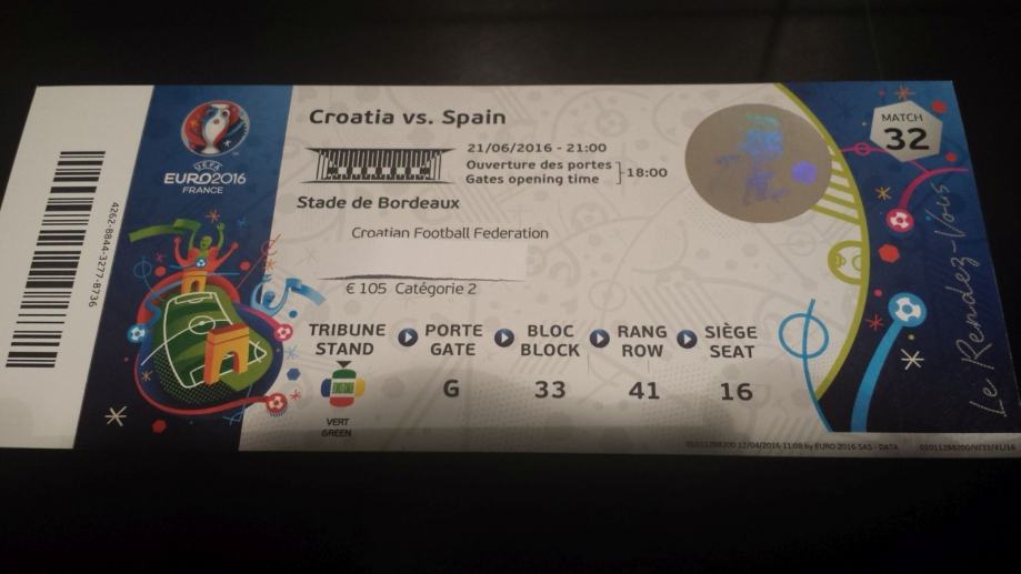 2. kategorija / 2 ulaznice / jedna ulaznica 105 EUR / 800,00 HRK