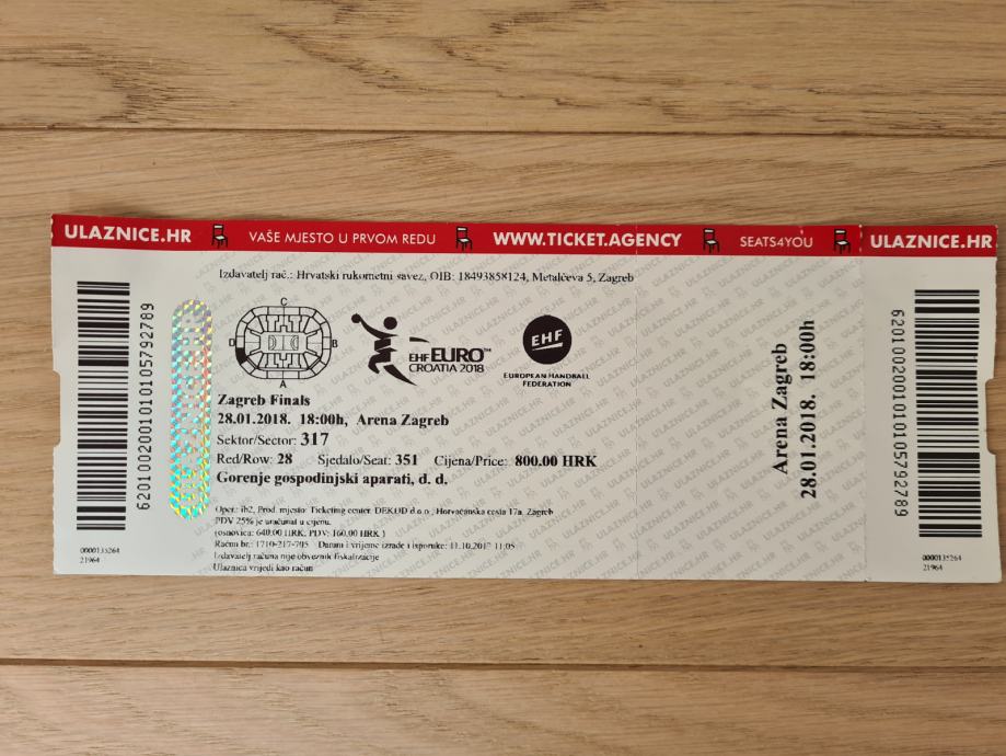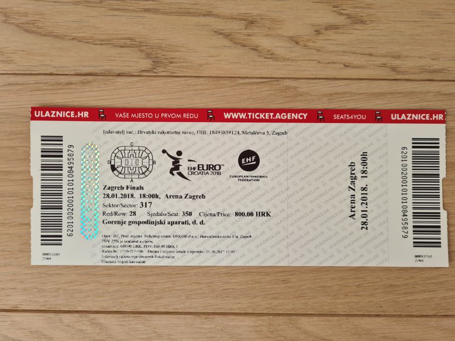 Ulaznice za rukomet EHF Euro Croatia 2018 finale