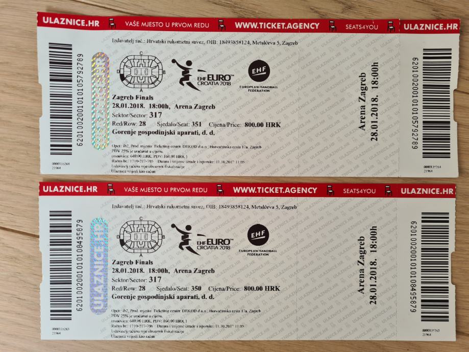 Prodajem ulaznice za rukomet EHF Euro Croatia 2018 finale.