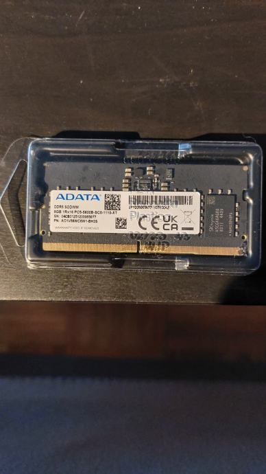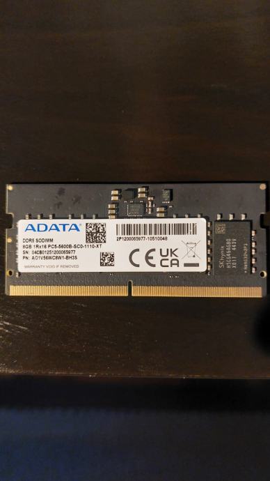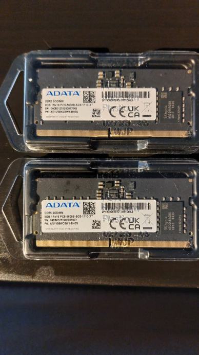 Prodajem ADATA 2 x 8GB DDR5 SO-DIMM (5600 MT/s) laptop memoriju, korištenu 4-5mj. Izvađena je zbog potrebe za povećanjem RAM memorije na 32GB.