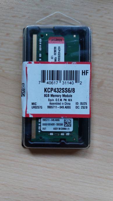 Prodajem potpuno novi i neotvoreni Kingston RAM modul model KCP432SS6/8. Prodajem iz razloga što sam naručila 2 pločice RAM-a te mi navedeni RAM ne pašu u laptop.