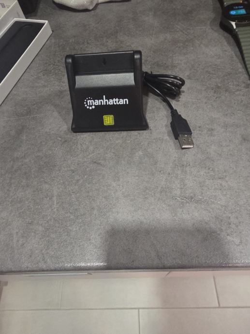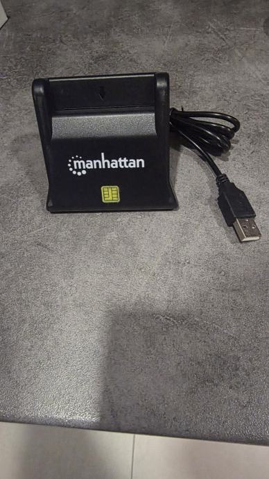 Prodajem novi Manhattan USB čitač pametnih kartica (smart card reader) u crnoj boji. Uređaj se spaja putem USB kabela koji je već priložen, a dizajniran je u obliku stalka koji karticu drži u uspravnom položaju. Pogodan je za čitanje chip kartica, uključujući osobne iskaznice i slične dokumente s čipom.