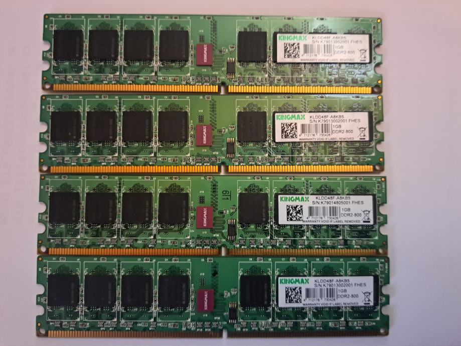 Prodajem 4 komada rabljene u ispravnom stanju KINGMAX memorije RAM DDR2 / 800MHZ / 1GB, navedena cijena je za 1 memoriju.
