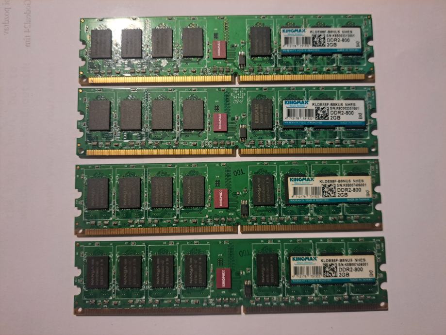 Prodajem 4 komada rabljene i ispravnom stanju KINGMAX memorije RAM DDR2-800MHZ-2GB, navedena cijena je za 1 memoriju.