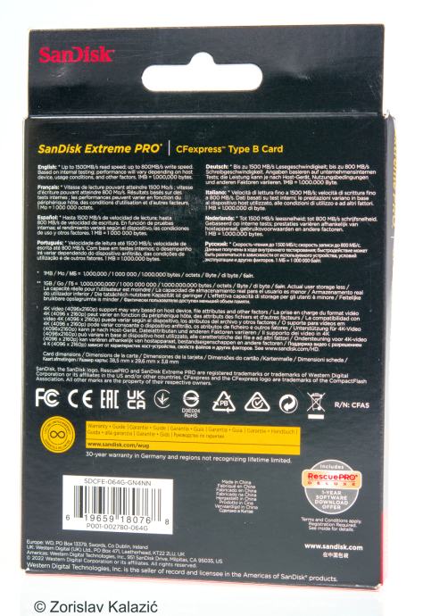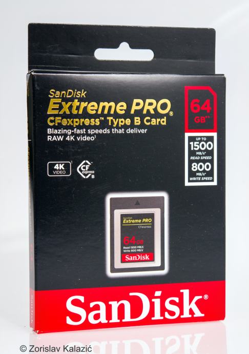 Sadržaj kutije: SanDisk Extreme Pro CFexpress memorijska kartica tipa B 64 GB (1500 MB/s čitanje, 800 MB/s pisanje, RescuePRO Deluxe, glatki RAW video zapisi, 4K, XQD kompatibilnost)