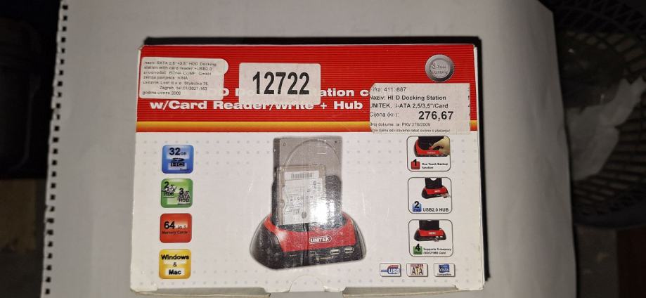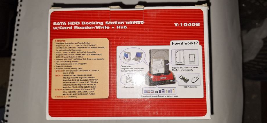 UNITEK SATA 2.5in/3.5in HDD Docking Station /w SD/MMC/MS/CF Card Reade