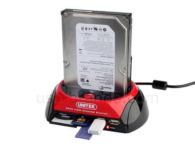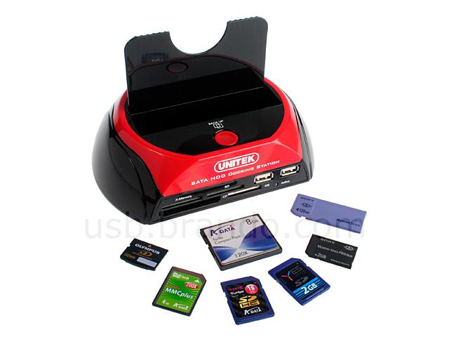 UNITEK SATA 2.5in/3.5in HDD Docking Station /w SD/MMC/MS/CF Card Reader and 2 USB Hub