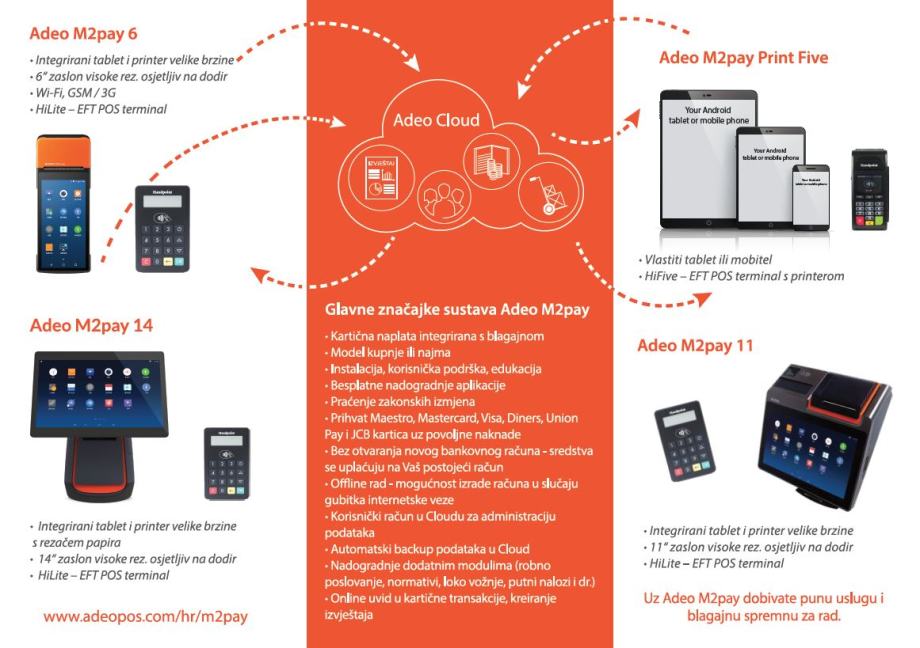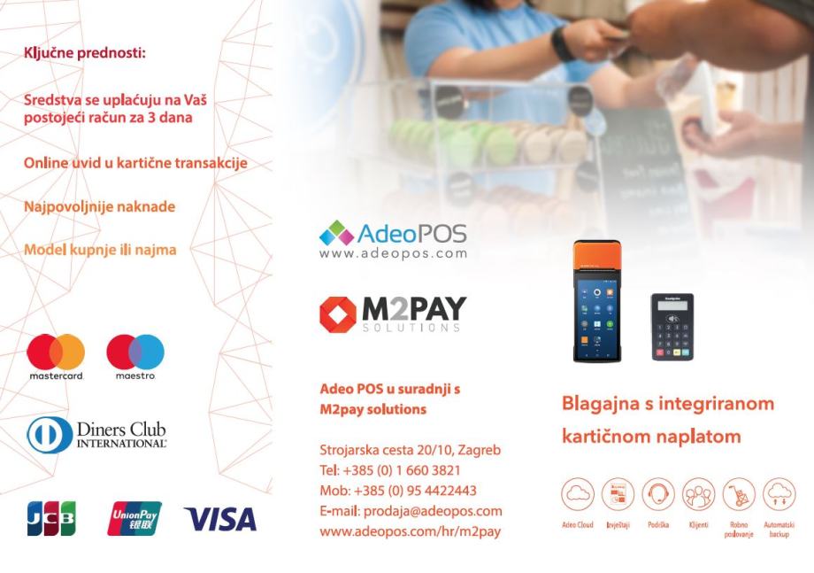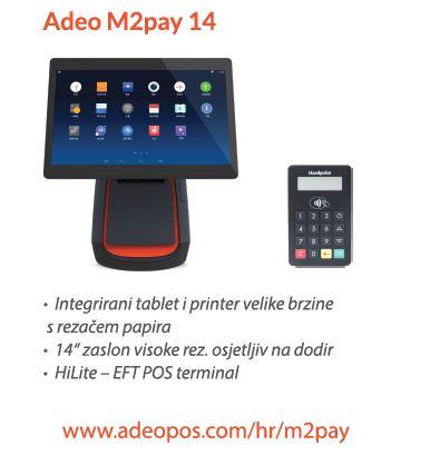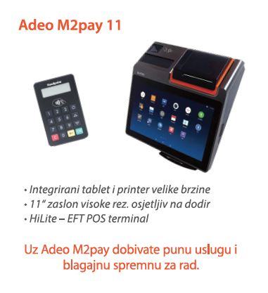AdeoPOS M2pay – NAJAM integriranog uređaja za kartičnu naplatu već od 7 EUR/mj.