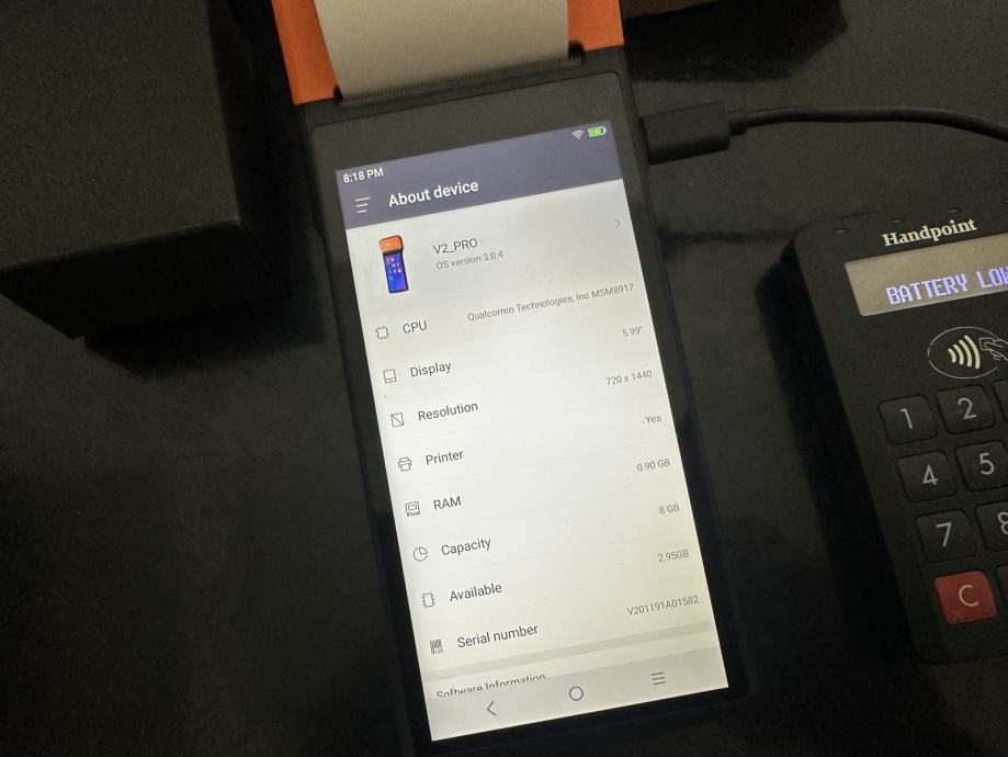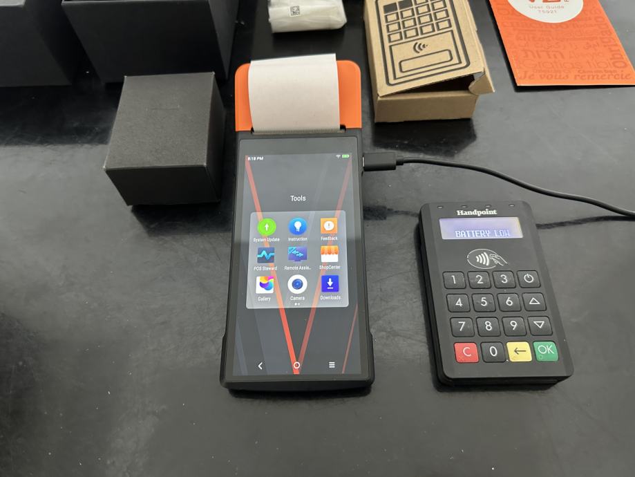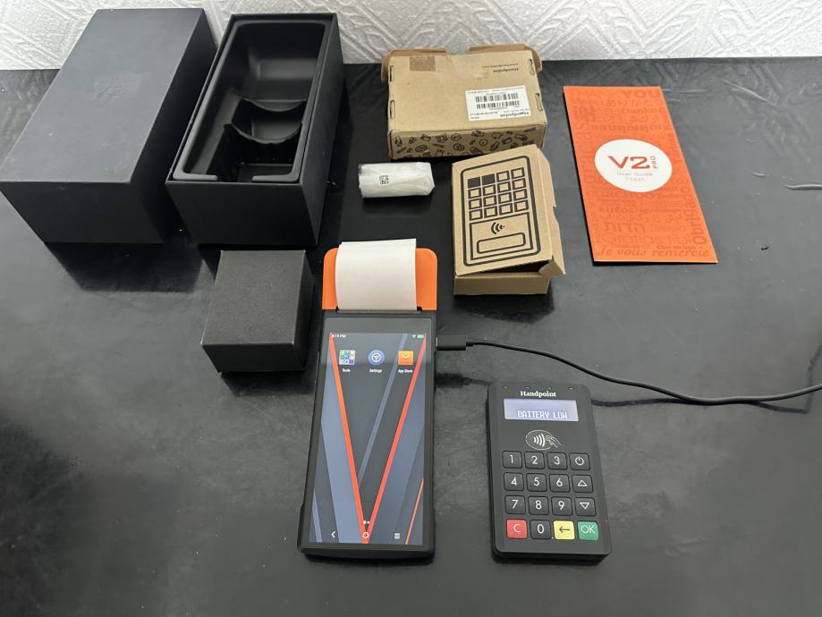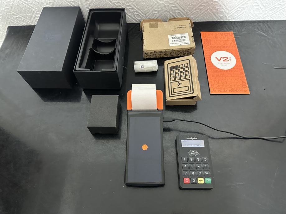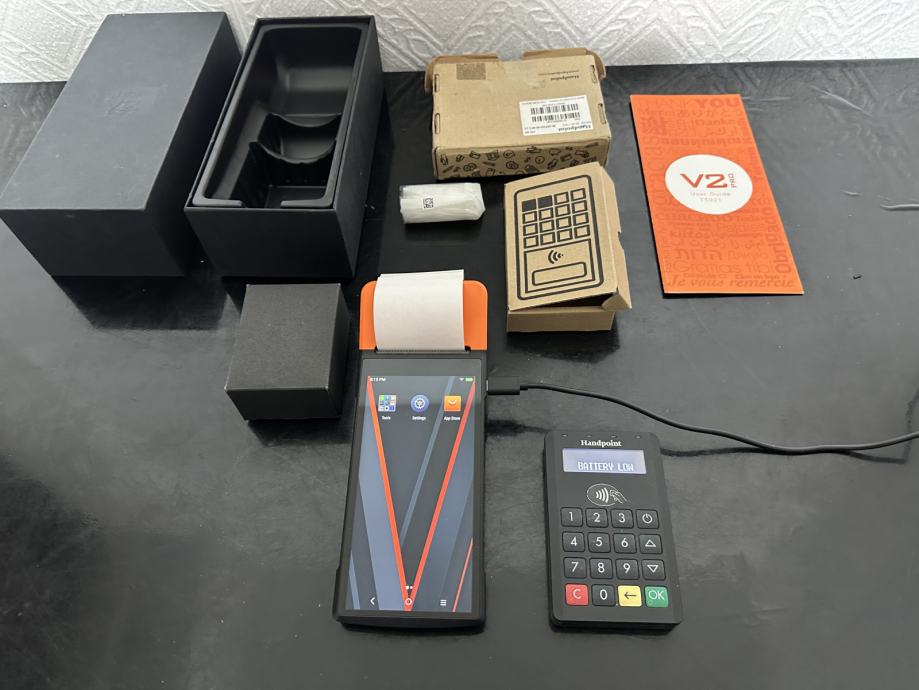 Prijenosna fiskalna blagajna SUNMi V2 PRO uz koju ide standalone uređaj za kartično plaćanje.