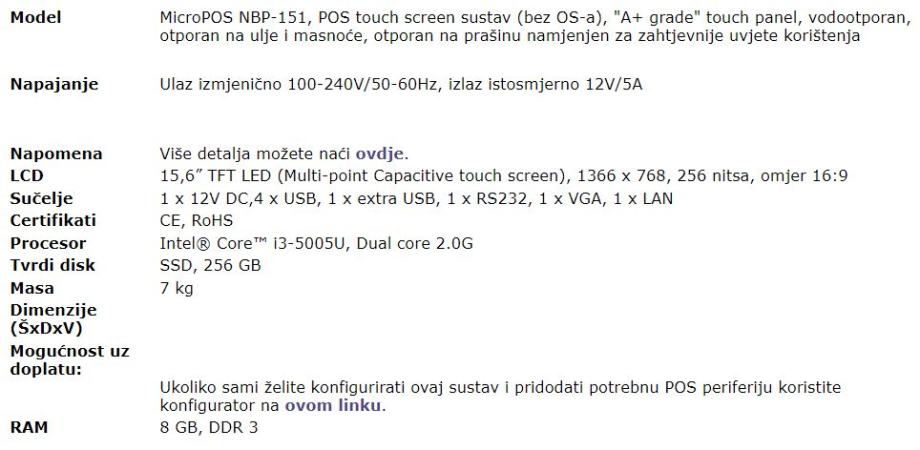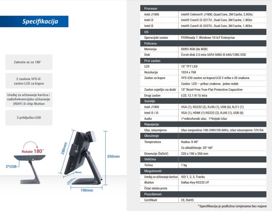 Nije uključeno: dodatni VFD/LCD zaslon za kupce - ( postoje verzije veličine 10 i 11 inča )
