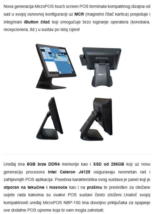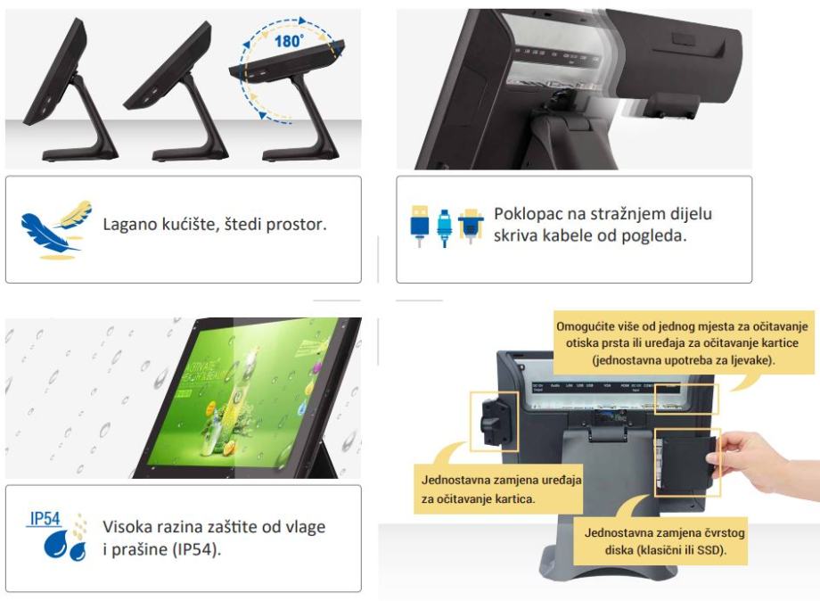 Zbog Touch ekrana na dodir - idealno za uslužne djelatnosti te za ugostitelje.
