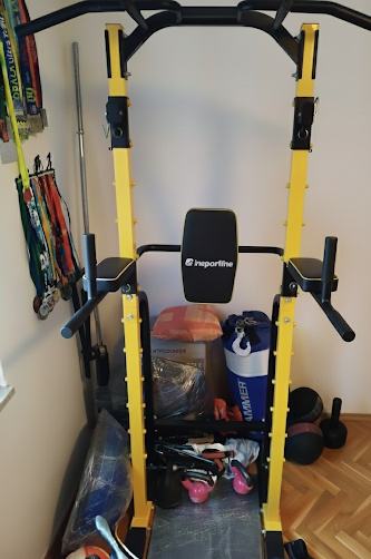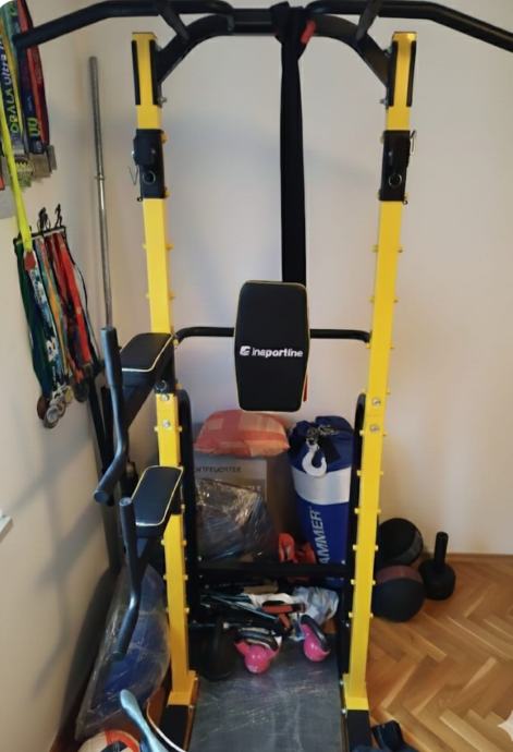Prodajem multifunkcionalnu spravu za vježbanje Insportline Power Tower (žuto-crna). Idealna za kućnu teretanu i trening cijelog gornjeg dijela tijela.