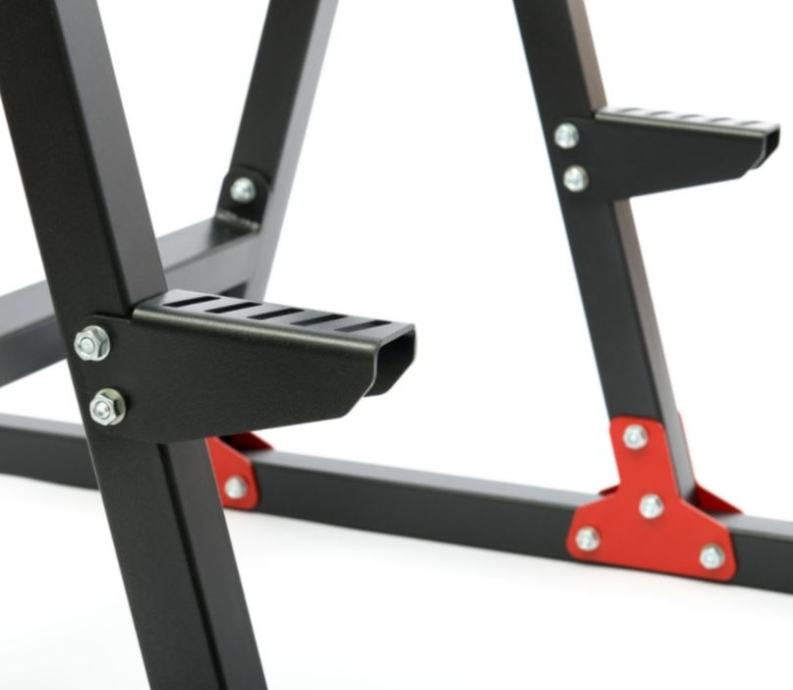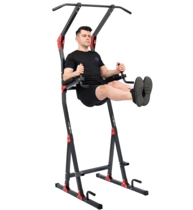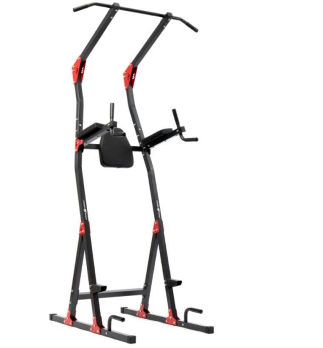 Dip station fitness sprava omogućuje vježbu mnogih mišićnih skupina. Oblikujte trbušne mišiće podizanjem nogu ili prsne mišiće, ramena i bicepse sa zgibovima. Zgibove možete vježbati ma srednjim rukohvatima ili na gornjoj poprečnoj palici na visini 210 cm. Marbo Sport je jedna od rijetkih poduzeća u EU koje proizvode fitness opremu koristeći najmodernije računarski vođene strojeve, koji garantiraju odlične sustavne dijelove, izdržljivost i estetiku konačnog proizvoda.Nasloni za leđa i laktove su obloženi. Sva 4 hvatišta su obložena protukliznim materijalom. Ova fitness sprava je 100% poljski proizvod. Debljina profila je 40 x 40 mm, debele ploče povezuju različite elemente klupe, garantirajući tako potpunu stabilnost i sigurnost vježbanja.Dimenzije: 63 x 97 x 210 cmTežina: 32 kgDozvoljena težina korisnika: 120 kg
