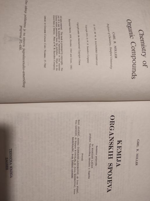 Kemija organskih spojeva, Carl N. Noller, Tehnička knjiga Zagreb, 1973.