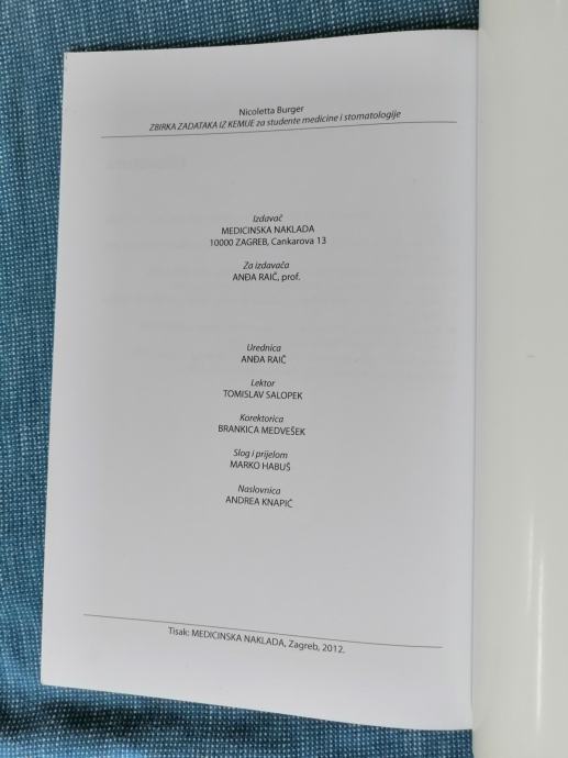 Nicoletta Burger – Zbirka zadataka iz kemije za studente medicine i stomatologije