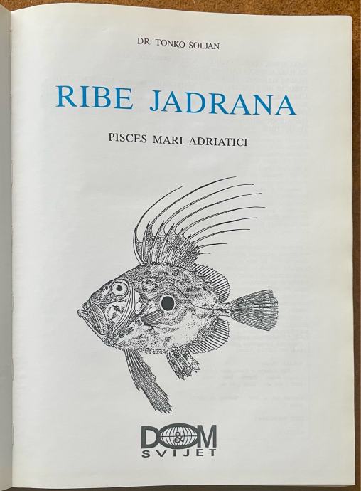 Ribe Jadrana, Pisces Mari Adriatici, autor dr. Tonko Šoljan, naklada Dom i svijet, Zagreb, 1995. godina.