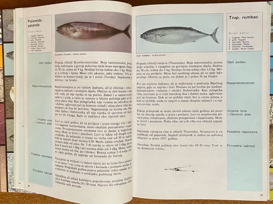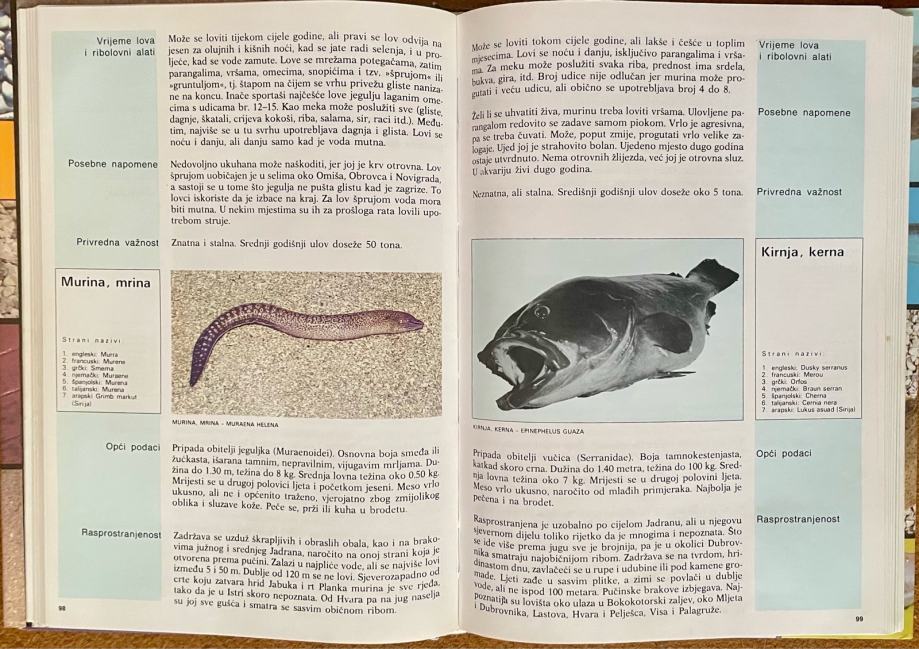 U knjizi se na popularan način, ali na strogo znanstvenim osnovama, prikazuju najčešće i ekonomski najvažnije vrste riba, rakova i mekušaca u Jadranskom moru. Ima više razloga što se pristupilo tiskanju drugog izdanja ove knjige. Najjači je onaj koji upućuje na sve veći interes naših ljudi za more i sva zbivanja koja se tiču mora i svih njegovih stanovnika. Tu se, dakako, u prvom redu misli na ribolov, pogotovo onaj kojemu je svrha sport i rekreacija. S obzirom na to, ovo drugo izdanje, u odnosu na prvo, obogaćeno je detaljnim opisima ribolova, posebno za one vrste koje su zanimljive i privlačne sportskim ribolovcima. Knjiga je za sve one koji su nadvladali početničke ribolovne korake i služe se sportskim alatima kao što su omeci, panule, povrazi i palice. Na isti način, kao što su opisani samo sportski alati, tako i kod izbora riba, izabrane su isključivo one za koje su još od davnina sportaši pokazivali zanimanje. Novouneseno gradivo o ribolovu plod su iskustva nekolicine najvrsnijih ribolovaca uzduž naših obala. Ova knjiga bit će od velike koristi posjetiocima našeg Jadrana, brojnim domaćim i stranim turistima, sportskim ribolovcima, učenicima, studentima, nastavnicima i svima onima koji detaljnije žele upoznati Jadransko more i život u njemu.