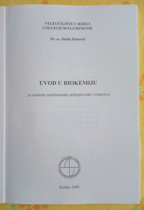 UVOD U BIOKEMIJU za studente mediteranske poljoprivrede i vinarstva (Siniša Petrović), Veleučilište u Rijeci, Rijeka, 2008., str. 117+VI, meki uvez, 13,50 € / 101,72 kn, prodajem.