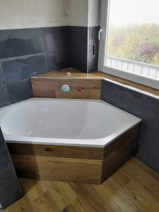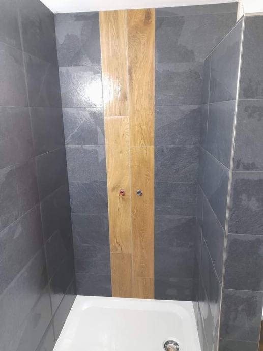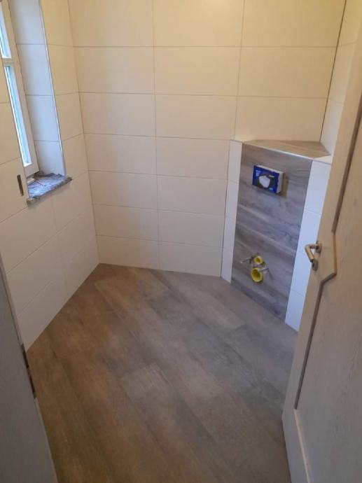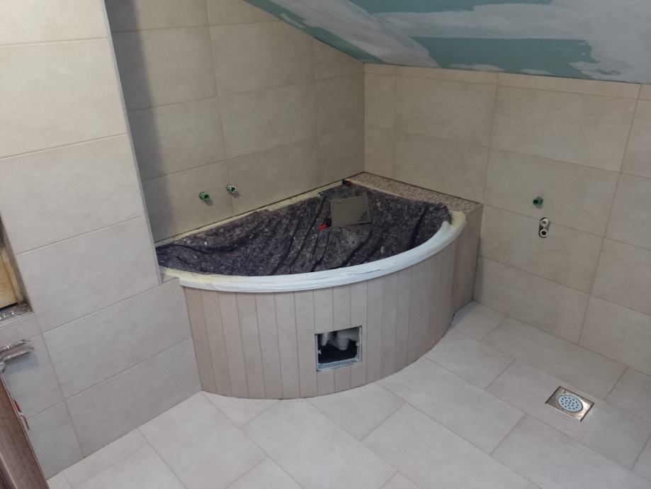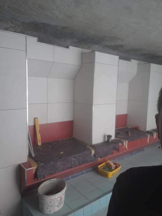 1. Adaptacija kupaone ( skidanje starih plocica, špahtlanje zidova, izvlacenje glazure ( estriha ) sa izolacijom, ozidavanje geberita, zidanje pregradnog zida tuša, ozidavanje ugradbene kade, rizola kod tuša ako nema dovoljnog pada prema odvodnoj kanalici, grundiranje, hidroizolacija, keramika, ugradnja ukrasnih lajsni fugiranje, silikon)