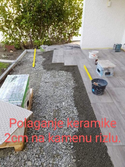 4. U ponudu nudim i polaganje keramike i kamena 2+cm na rizlu granulacije 4-8-12mm na vanjskim terasama, oko bazena i sl....