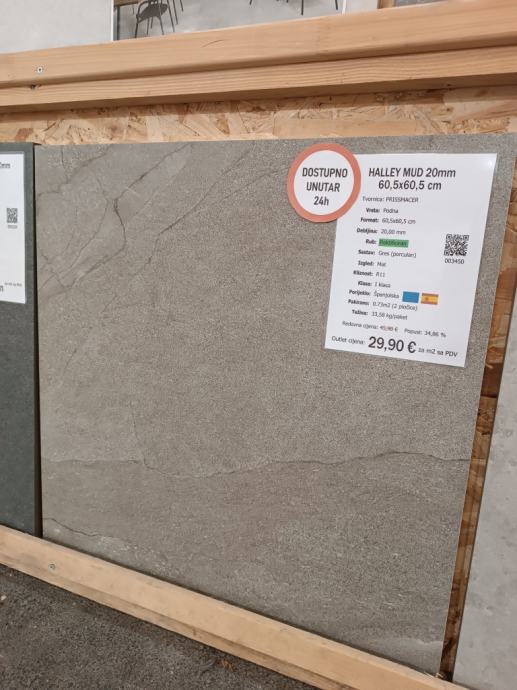 Španjolske porculanske pločice 1. klase. Mat, sastav porculan, R11 protuklizne, format 60x60, laserski rubovi. 2cm debele, mogu i na nosače. Na lageru, dostupne za preuzimanje odmah.