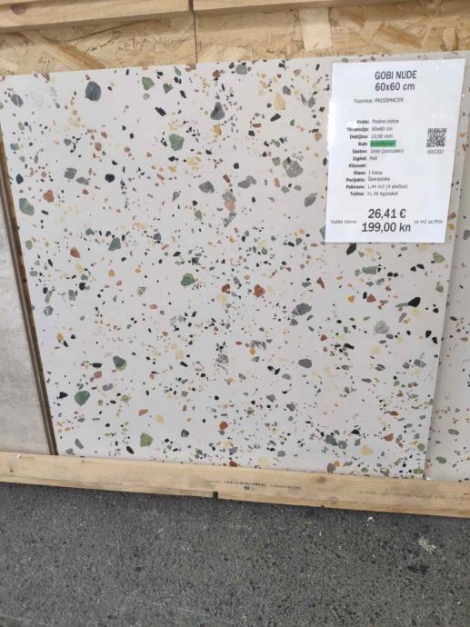 Španjolske gres pločice 1. klase. Mat, sastav gres (porculan), uzorak terrazzo, dimenzija 60x60, laserski rubovi. Na lageru, dostupne za preuzimanje odmah.