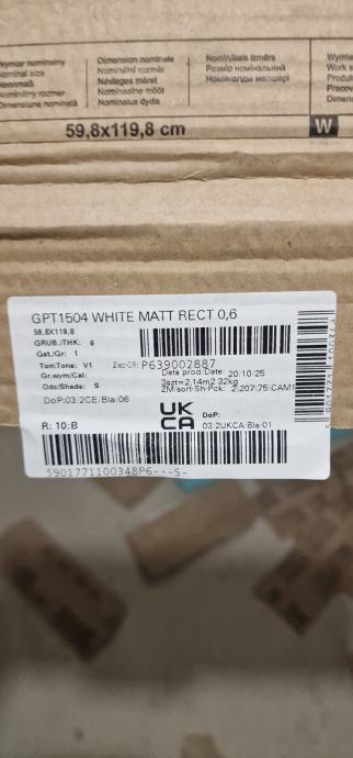 Bijela pločica proizvedena u Poljskoj. 119.8x59.8, deb.0.6mm, ratificirana,, R10, 6 kom. (cca.4.m2).