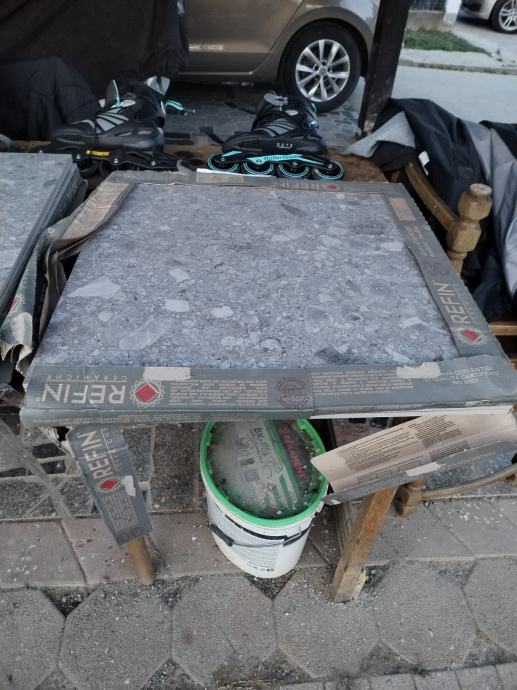 Prodajem podne pločice 60cm x 60 cm debljine 0.9 cm,15 ploča tj 5.5 kvadrata. Info.0997100515
