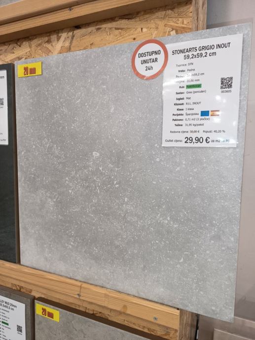 Španjolske porculanske podne pločice 1. klase. R11 protuklizne, novi INOUT sustav. Format 60x60, idealne za terase, 2CM DEBELE, mogu se lijepit, ali i postavljat na nosače. Na lageru, dostupne za preuzimanje odmah.