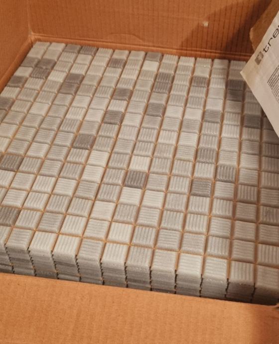 Prodajem mozaik pločice u sivim nijansama. Kutije su oštećene, nedostaje oko 1-2m². Cijena 20€/m², ali korektnom kupcu koji bi kupio sve odjednom mogu spustiti cijenu za maksimalno 50€.