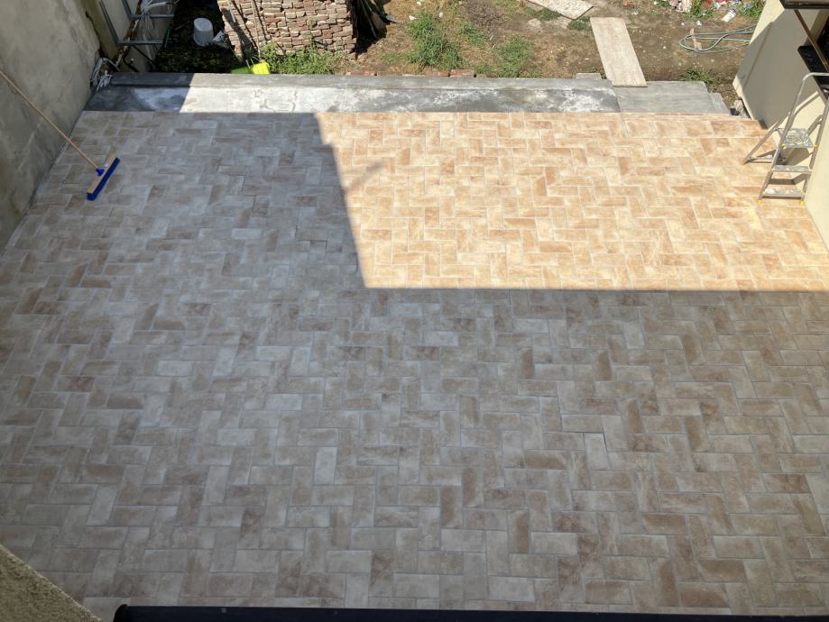 15.12 m2, prekrasnih plocica, u stilu Terracotta (crvena zemlja), antickog izgleda s nepravilnim rubovima.