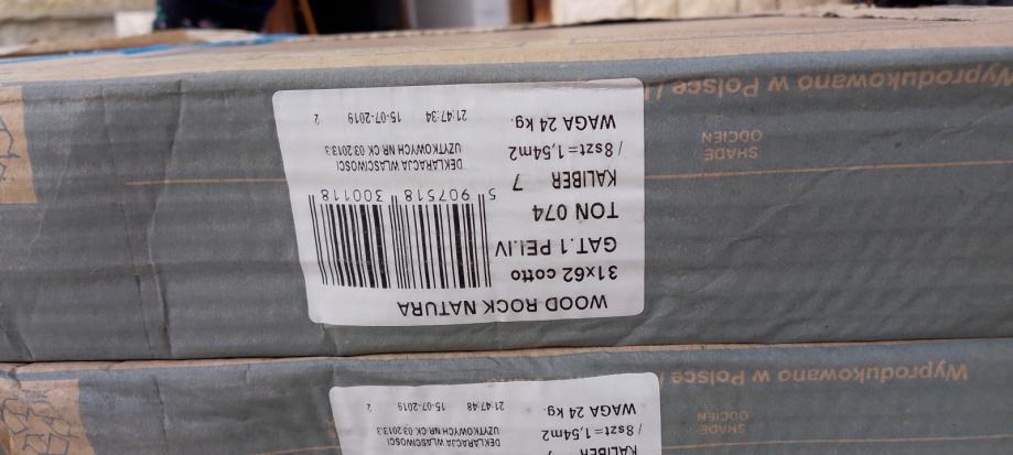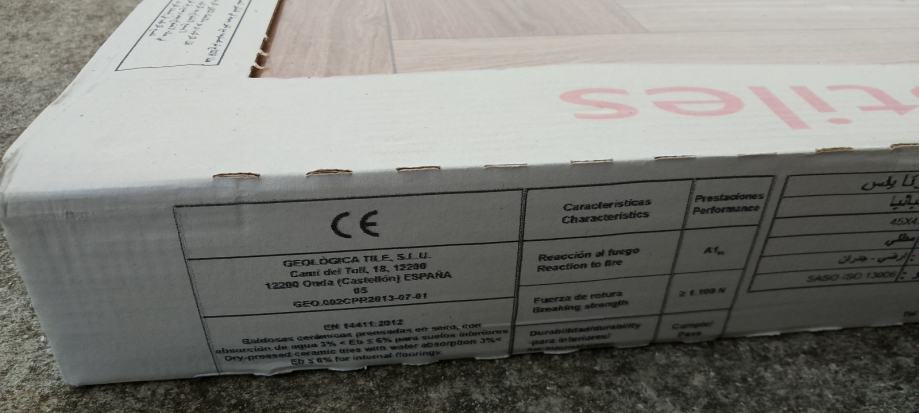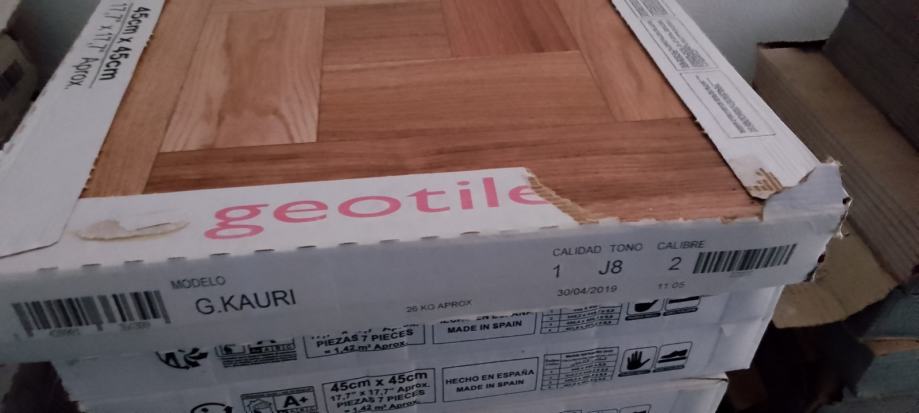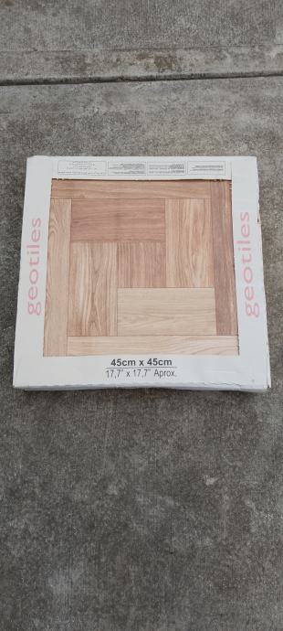 Prodaje se 18 paketa unutarnjih podnih pločica. Svaki paket sadrži 7 pločica dimenzija 45x45 cm, pa je površina u svakom paketu ~1.42 m2 odnosno ~25.5 m2 sveukupno u 18 paketa. Cijena je 20€ po paketu ili 350€ za svih 18 paketa.