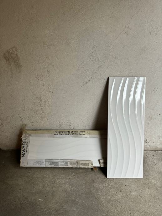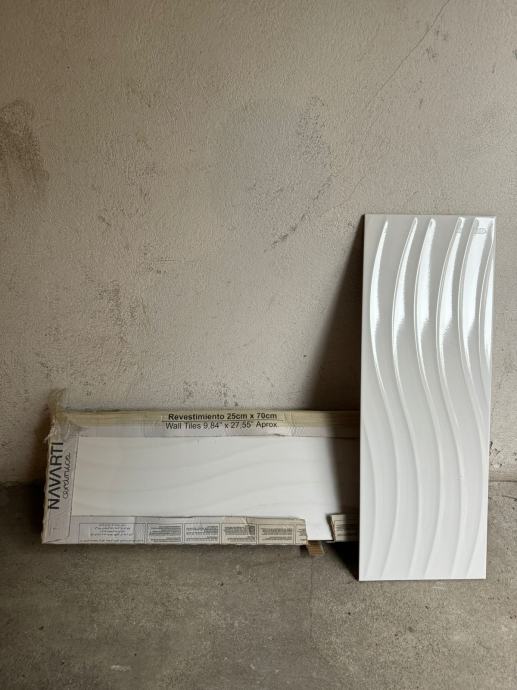 Prodajemo nove zapakirane plocice(prilazemo racun). Plocice se ne uklapaju vizualno u stil kupaone te se zato prodaju. 5 paketa je zatvoteno, te 6 plocica od otvorenog paketa. Prilazemo i slike. Dimenzija plocica je 25x70