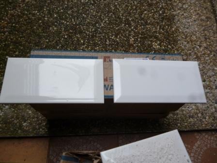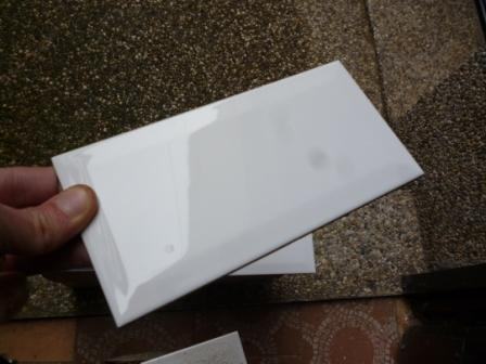 Zidne pločice dimenzija 10 x 20 cm, sa zakošenim rubom, bijele boje.