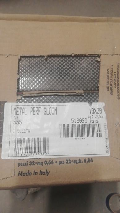 keramičke pločice iz kolekcije Diesel Living with Iris Ceramica. Specifičan proizvod je Metal Perf u boji Gloom, dimenzija 10x20 cm.