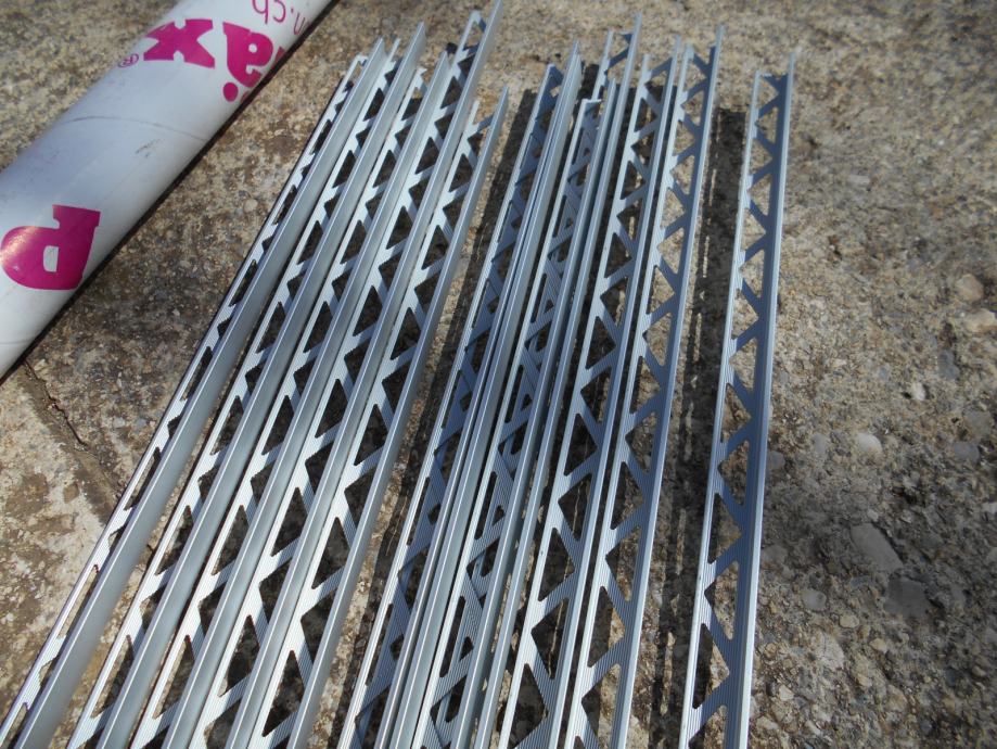 Prodajem iz slika vidljive profile za keramičke pločice . Imam ih 12 kom . Dužine su 2,5 m . Visina je 12,5 mm , debljina gornje stijenke je 2 mm . Jedinačna cijena je 6 Eura , a tko kupi svih 12 idu za 50 Eura ..
