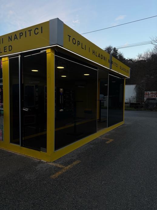 Prodajem kontenjer namijenjen za razne djelatnosti, izveden kao zatvorena, samostojeća jedinica žuto-sive boje. Ima dvoja soft vrata (12 mm) od stakla u boji, kaljeno lamistal staklo. Opremljen je unutarnjim osvjetljenjem te je klimatiziran.Unutrašnjost je prostrana.
