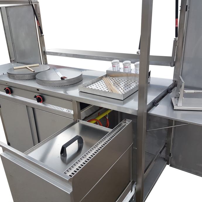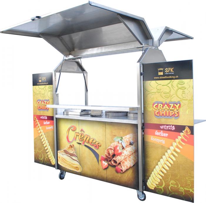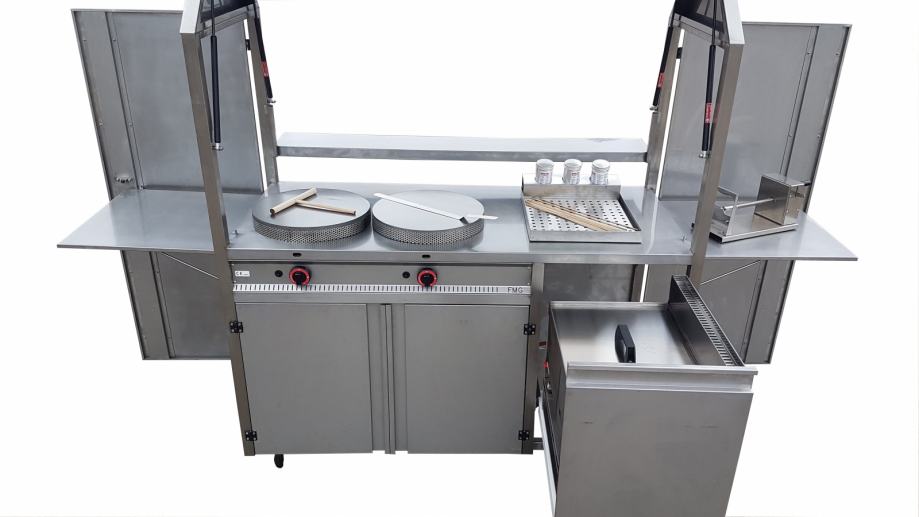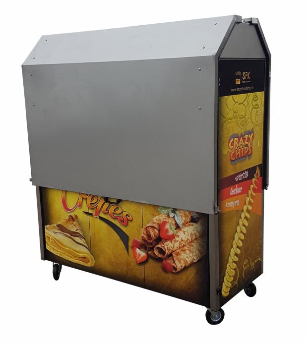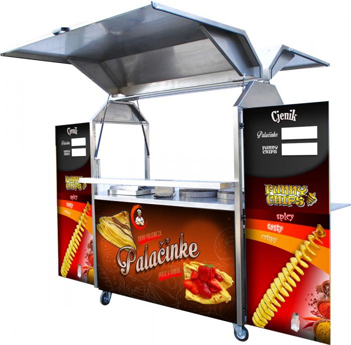 Inovativna mobilna kolica su savršen magnet za kupce, a istovremeno visoko funkcionalna i ergonomski oblikovana za zahtjevnu profesionalunu uporabu. Osim za prodaju u hotelima i restoranima idealan su proizvod za prodaju na plažama, stadionima, prodajnim centrima, sajmovima, u parkovima ili na štandu lokalnog festivala. Priprema na kolicima je izrazito jednostavna, ekonomična i atraktivna.