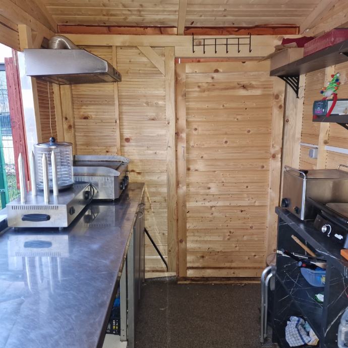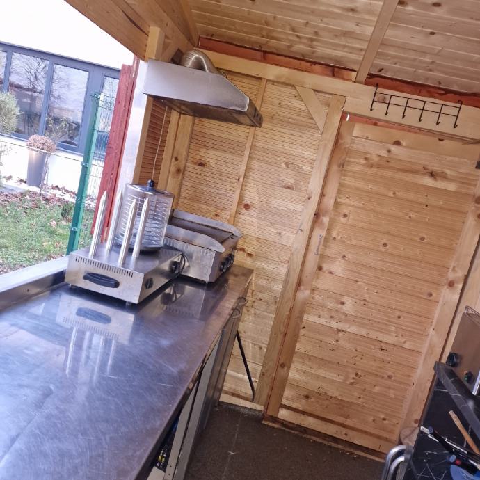 Na prodaju mobilna kućica za fast food, dimenzije 3x2 metra, sa grillom, kuhalom i grijačem za hrenovke, tosterom i šankom.