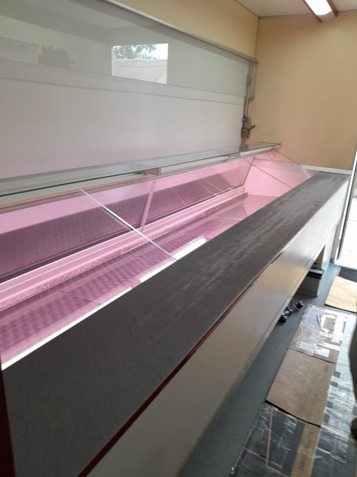 Instalirani su rashladna vitrina od 3m i ledenica ladičar. Sustav za pranje ruku sa spremnicima čiste i otpadne vode.