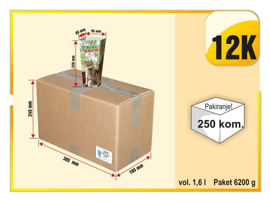 Veličina 12K = 0,24 €, pakiranje 250 kom x 0,24 = 60€,