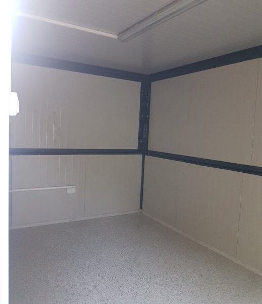 Prodajno – izložbeni kontejner / kućica izrađena je od metalne konstrukcije bojane temeljnim primerom i dvokomponentnom završnom bojom. Zidovi i krov su izrađeni od termoizolacijskog panela debljine 50 mm Podnica je izrađena od panela 50 mm ,OSB obloge debljine 22 mm i gumirana obloga sa završnim lajsnama i kutevima PVC vrata dim. 90×205 cm Podizna stjenka na amortizere sa bravicama za zaključavanje iznutra i ručkicama za lakše podizanje izvana na otvaranje dim 200×100 cm x4 .Provedene kompletne rlektro instalacije s LED rasvijetom i vanjskim napajanjem.