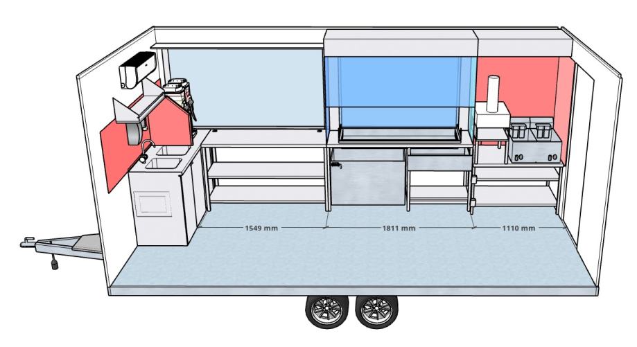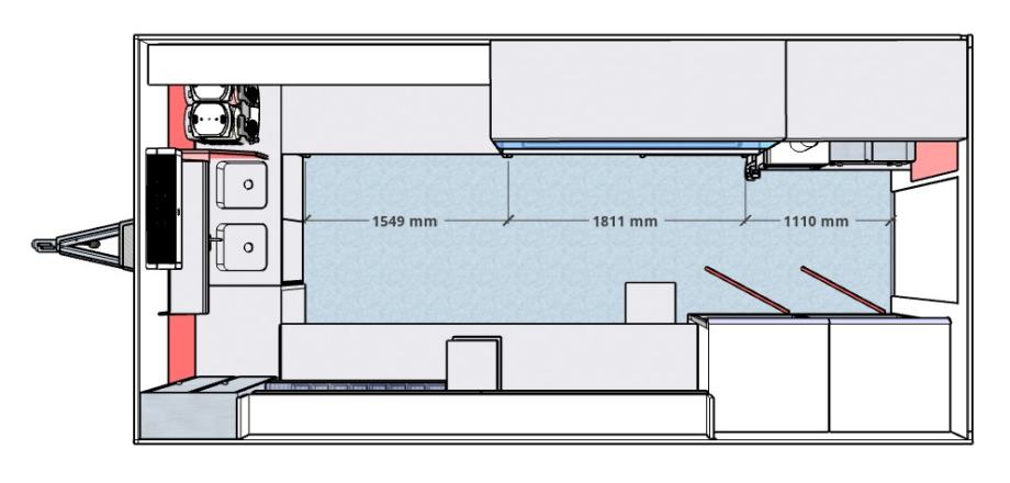 Dužina - 5 metara, širina - 2,5 metara, visina - 2,2 metra.