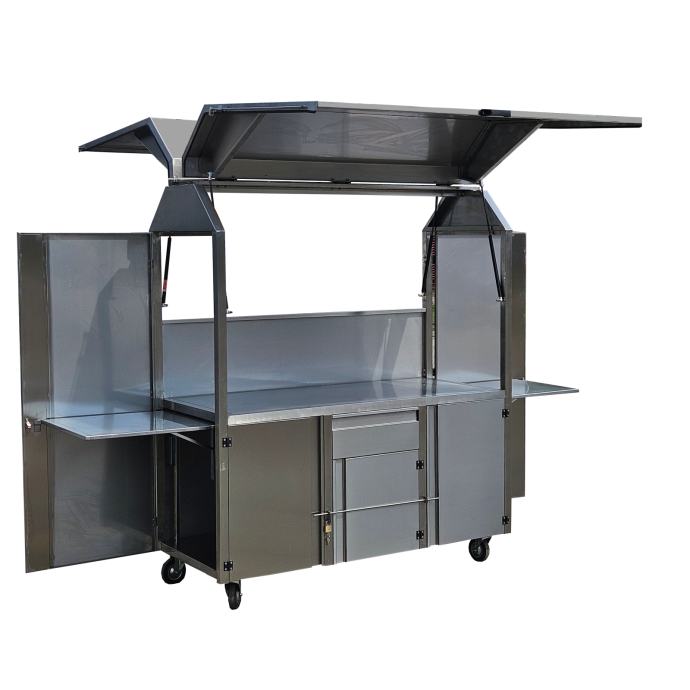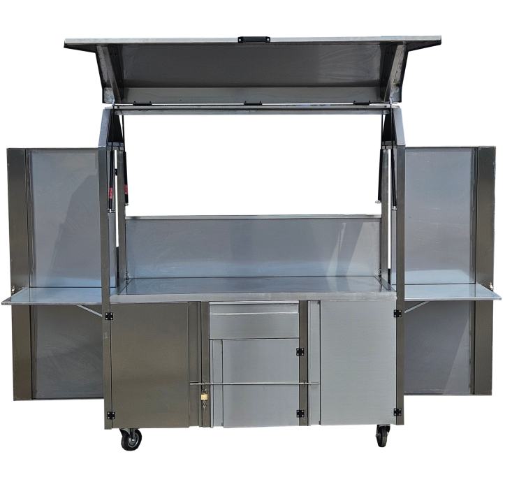 Inovativna mobilna kolica su savršen magnet za kupce, a istovremeno visoko funkcionalna i ergonomski oblikovana za zahtjevnu profesionalunu uporabu. Osim za prodaju u hotelima i restoranima idealan su proizvod za prodaju na plažama, stadionima, prodajnim centrima, sajmovima, u parkovima ili na štandu lokalnog festivala. Priprema na kolicima je izrazito jednostavna, ekonomična i atraktivna.