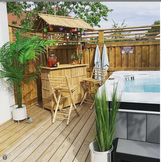 Ovaj jedinstveni vrtni komplet koji uključuje tezgu i 2 stolice stvorit će tropski ugođaj u Vašem vrtu ili dvorištu. Tezga ima prepoznatljiv krovni dizajn, što će je pretvoriti u okupljalište u Vašem vrtu, terasi ili dvorištu.