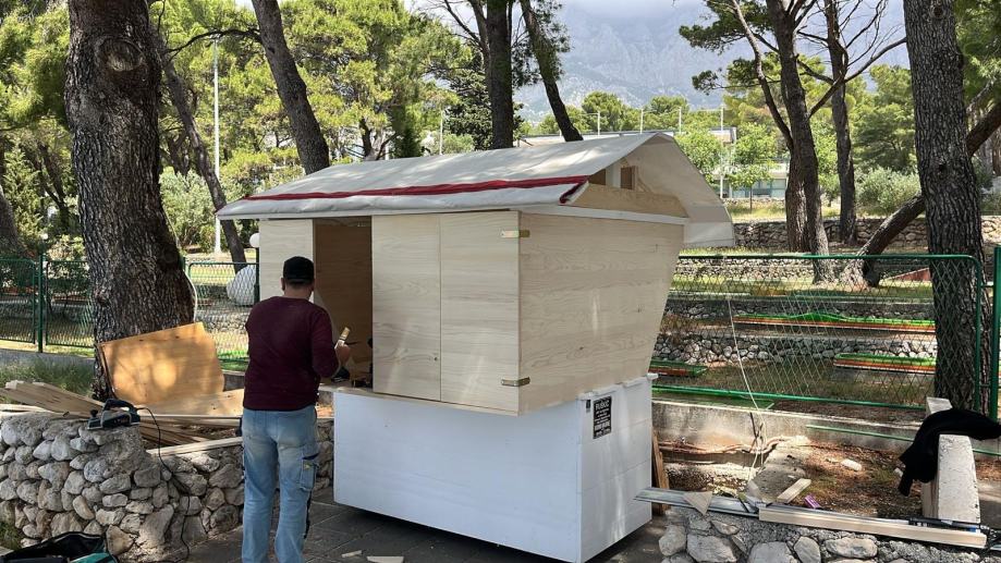 Štand je moguće rastaviti da izgleda kao na slici broj 4,napravljen je ovako radi lakšeg poslovanja te da moze stat više stvari.