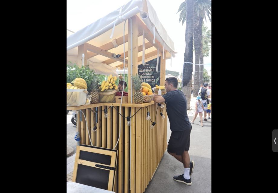 Prodajem vrhunski stand za sezonsku prodaju sokova , smoothija ,voćnih salata…stand je koristen 2 mjeseca te ima provucene instalacije za vodu i struju. Dimenzije 200š x 100 d…bež tenda skrojena po mjeri s jednostavnim sistemom zatvaranja…idealan za plažu,rivu i šetnice uz more.