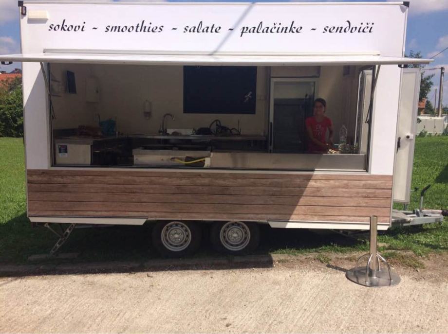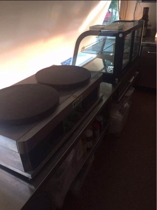 Ugostiteljska prikolica sa retropultom, 2 neutralna stroja, hladnjak i vitrinom, narucit cu za Vas i 2 pekaca za palacinke marke Krampouz. Radila malo (4 dana u 2 godine) kupljena s idejom ali nisam imao radnika da realiziram tu ideju