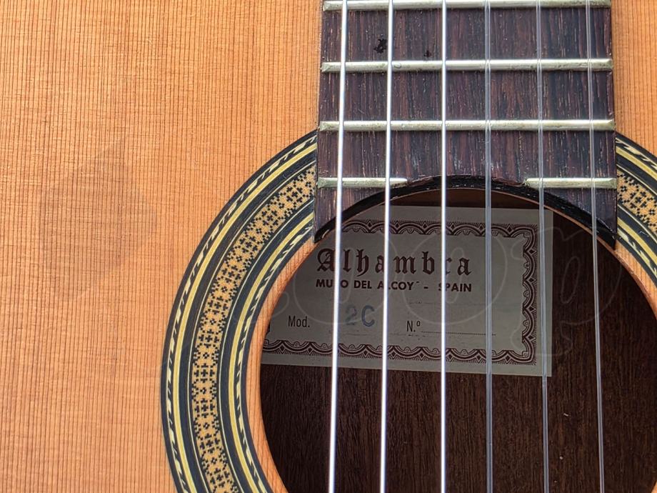 Alhambra 2C klasična gitara je odličan izbor za polaznike glazbenih škola, ali i za napredne svirače koji žele klasičnu gitaru toplog zuka. Gitara ima prednju ploču od punog cedra, tijelo od mahagonija, vrat od mahagonija, prstohvat od palisandera. Izrađeno u Španjolskoj.